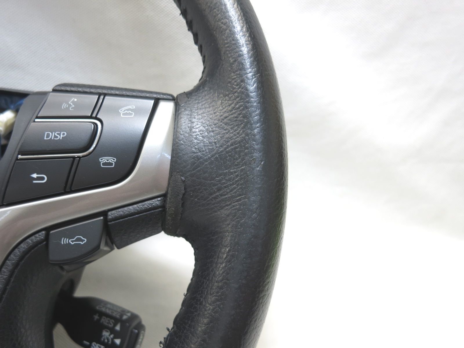 希少! クラウン GRS211 純正 革 ステアリング ハンドル 捲れ有り GRS210 GRS214 クルコン スイッチ 管理番号(W-6395)