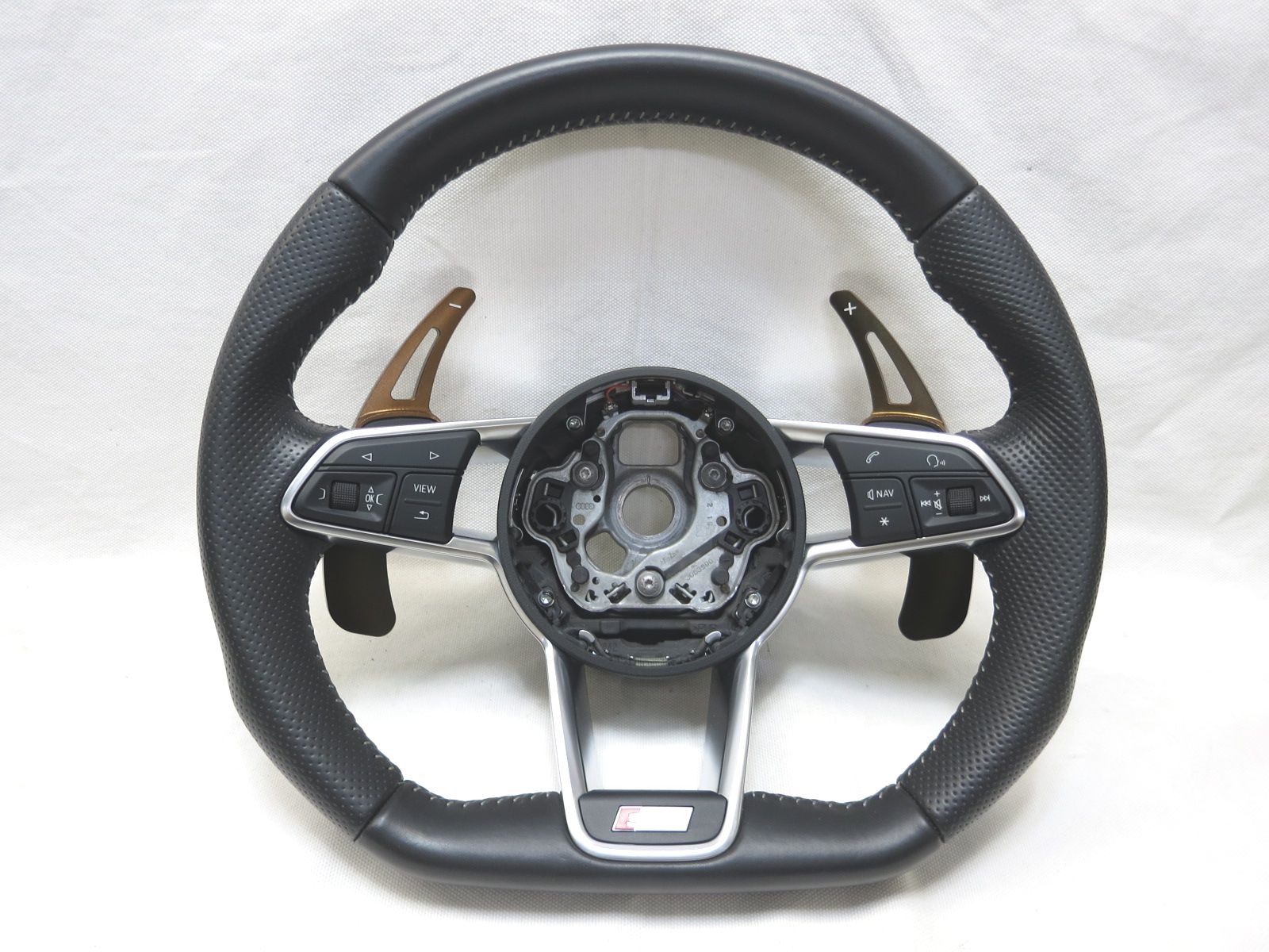 ダブルステッチ! SQ5(FY)アウディ 純正 S-line 革 ステアリング ハンドル パドルシフト スイッチ Q5 管理番号(W-1856)