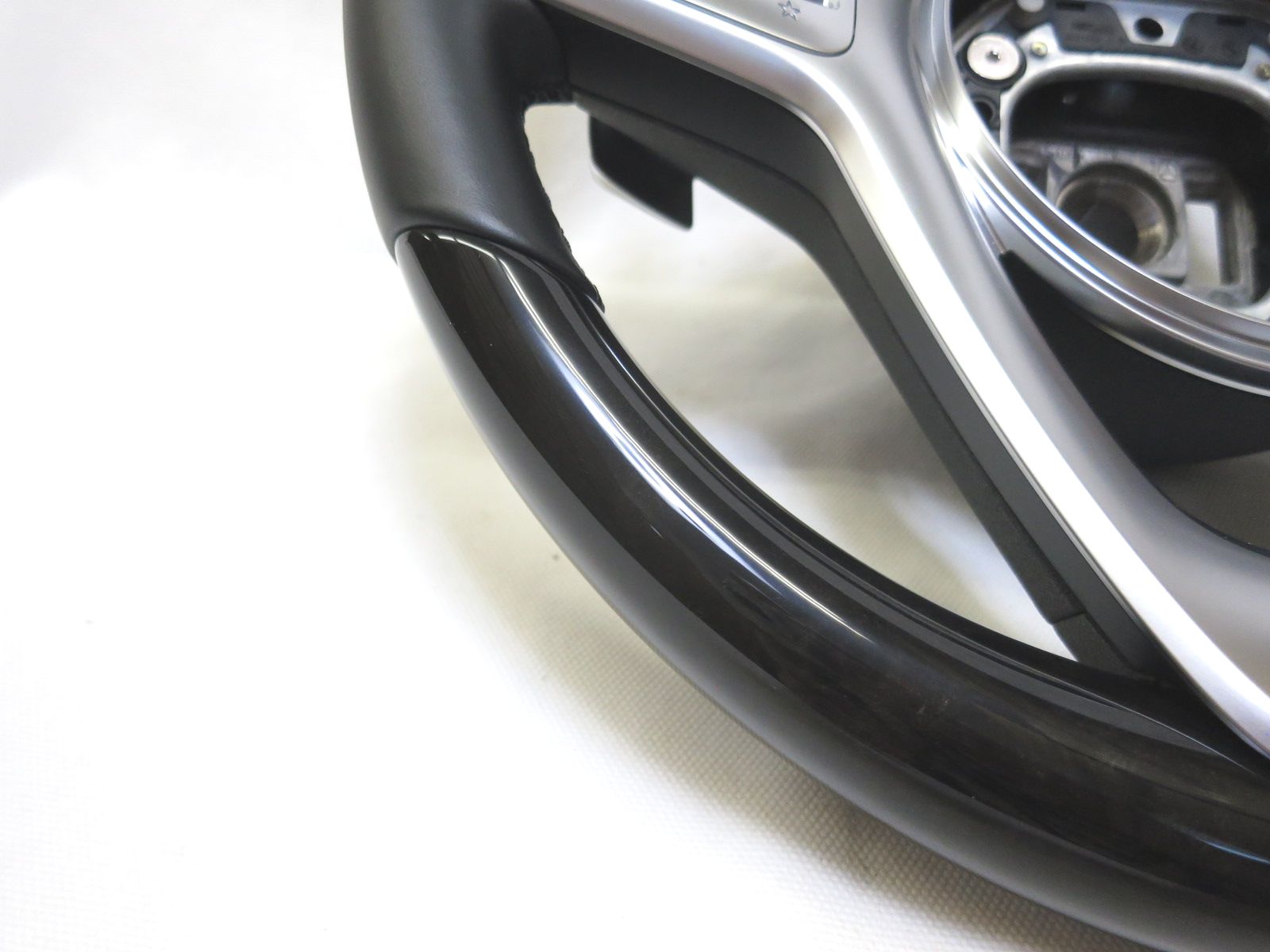 新同! W222 後期 純正 ブラックハイグロスポプラ ウッド ステアリング ハンドルA0040053999 ZGS01 A0004603404 9E38 管理番号(W-6780)