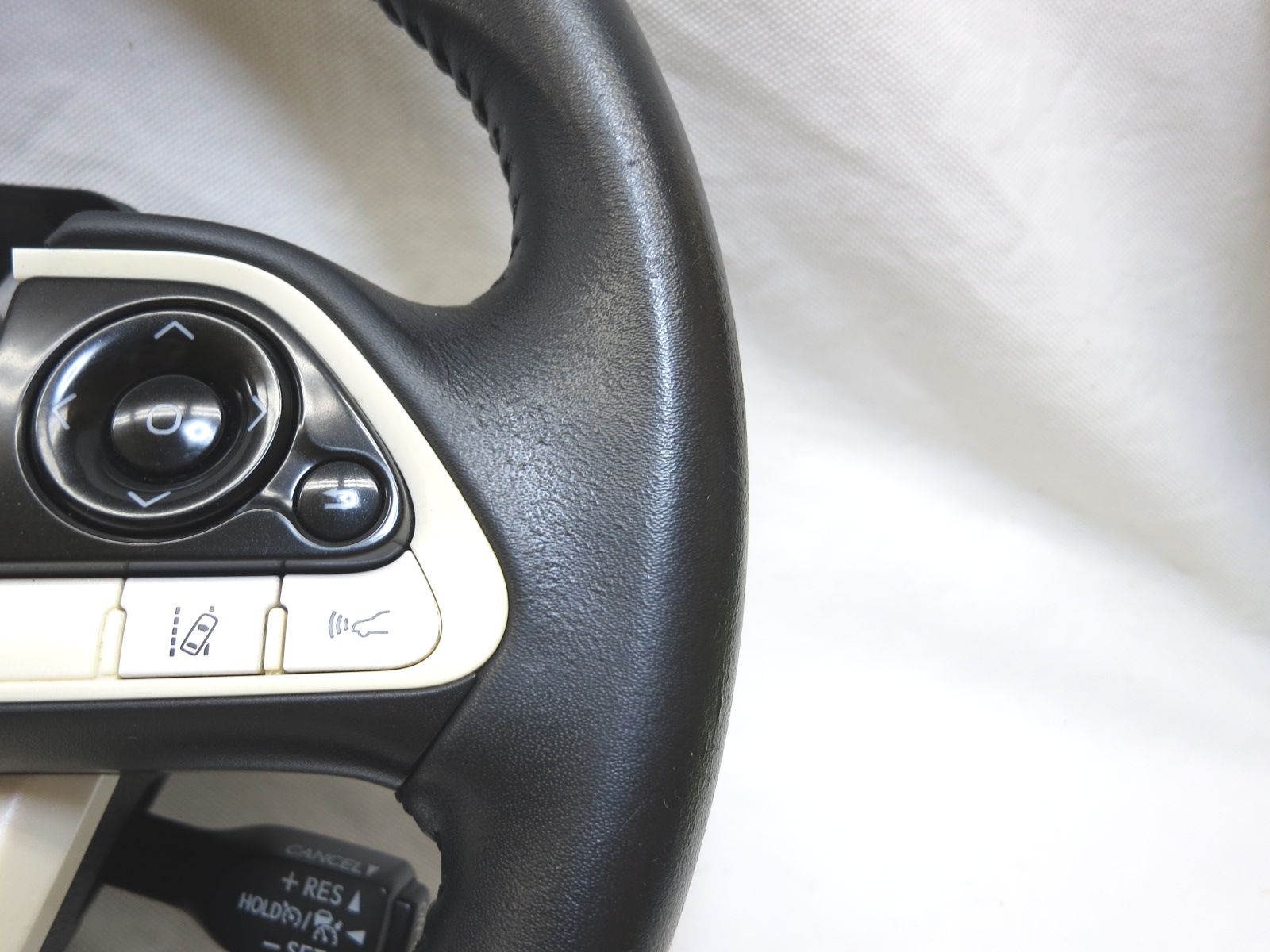 プリウス ZVW50 純正 革 ステアリング ハンドル 上部めくれ、スイッチパネルに黄味が有ります。ZVW51 ZVW52 ZVW55 管理番号(W-6852)