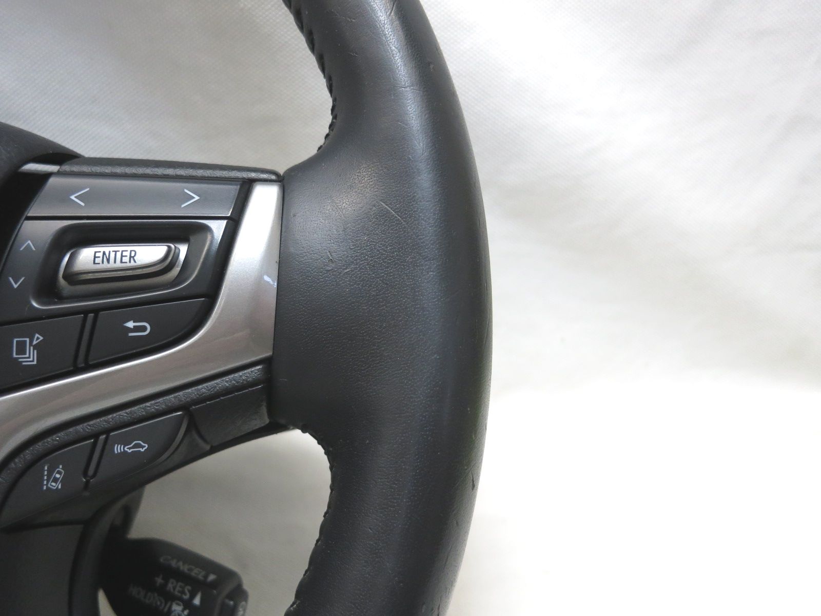 希少!パドル付! クラウン GRS210/GRS211/GRS214 純正 革 ステアリング ハンドル 擦れ有り クルコンスイッチ mats+B 管理番号(KM739786)