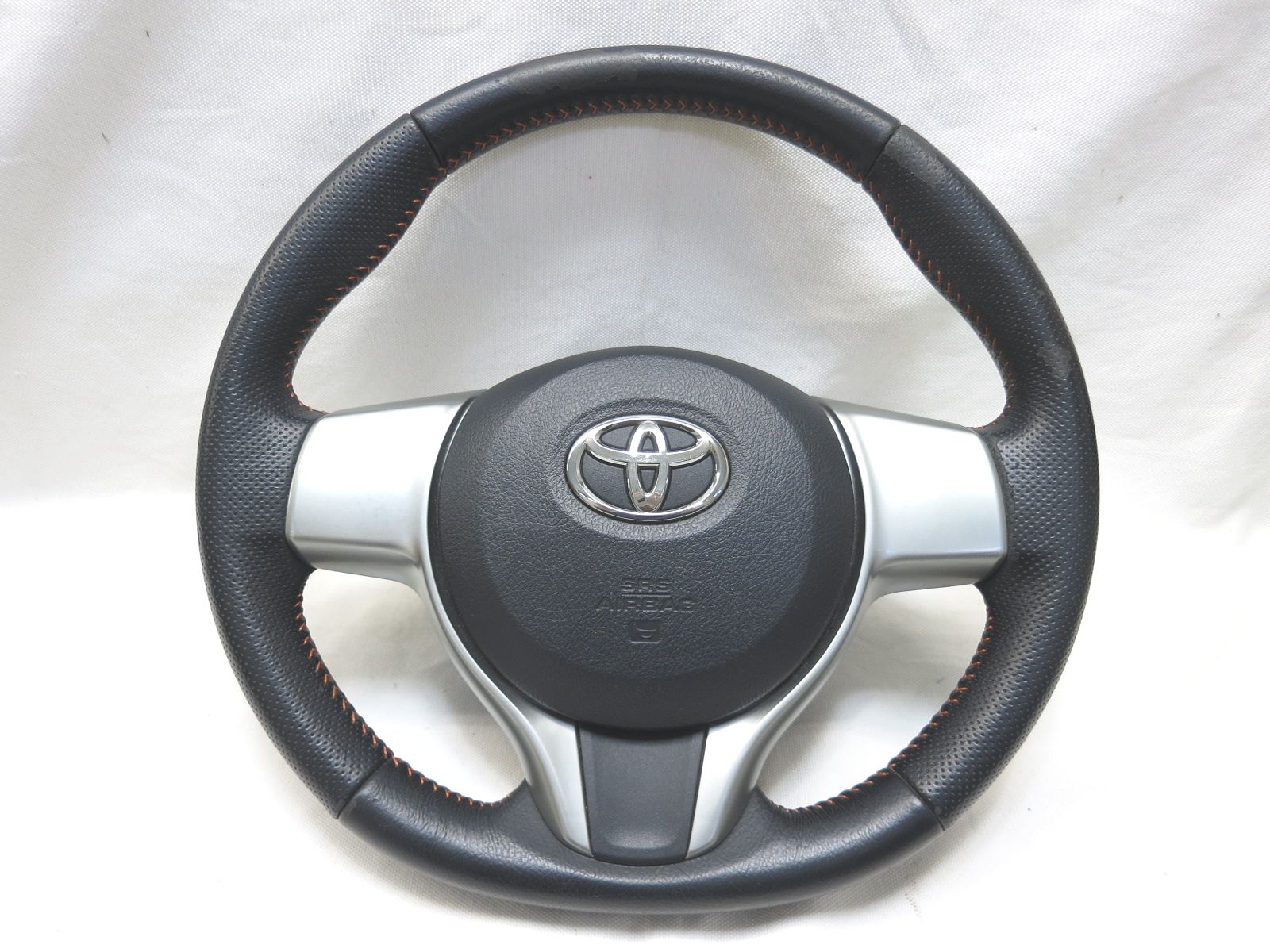 オレンジステッチ! ヴィッツ NSP130 130系 ラクティス 120系 革 ステアリング 捲れ有り エアバック エアーバック 管理番号(W-1308)